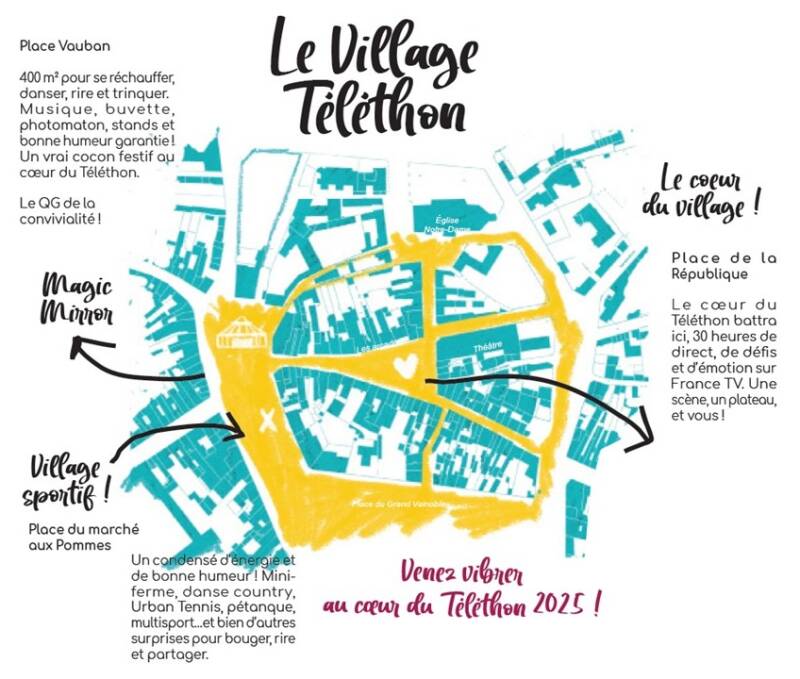 A partir de 19 heures 30 : lancement des animations festives et sportives au sein du Village Téléthon (place de la République) et du Village sportif (place du Marché aux Pommes et place Valnoble)